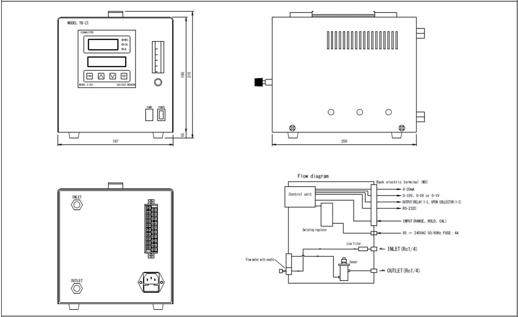 | 顯 示 | % : 0.00 ~ 99.99% O2 | ppm : 0 ~ 9999ppm O2 |