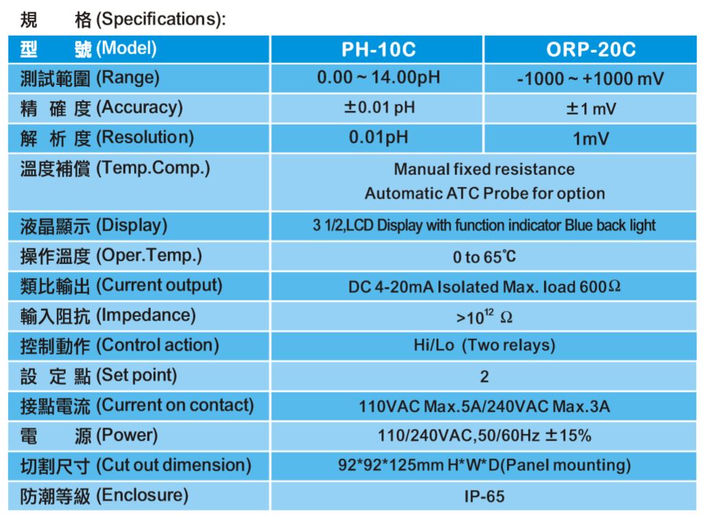 HOTEC PH-10C/ORP-20C 酸鹼度/氧化還原電位分析儀 - PH/ORP Analyzer
