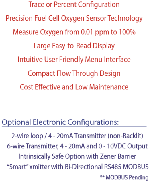 | OMD-150氧氣分析儀/微氧分析儀採用氧氣感測器是利用電化學電極(electrochemical fuel cell)量測氧氣濃度。使用24Vdc電源。 | |