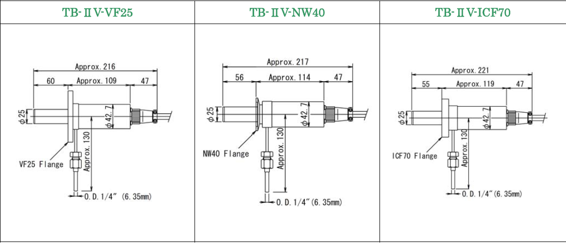 | 可直接安裝於密閉腔體、手套箱或真空爐上。TB-IIV可適用2atm~10-5Torr壓力下量測。 | |