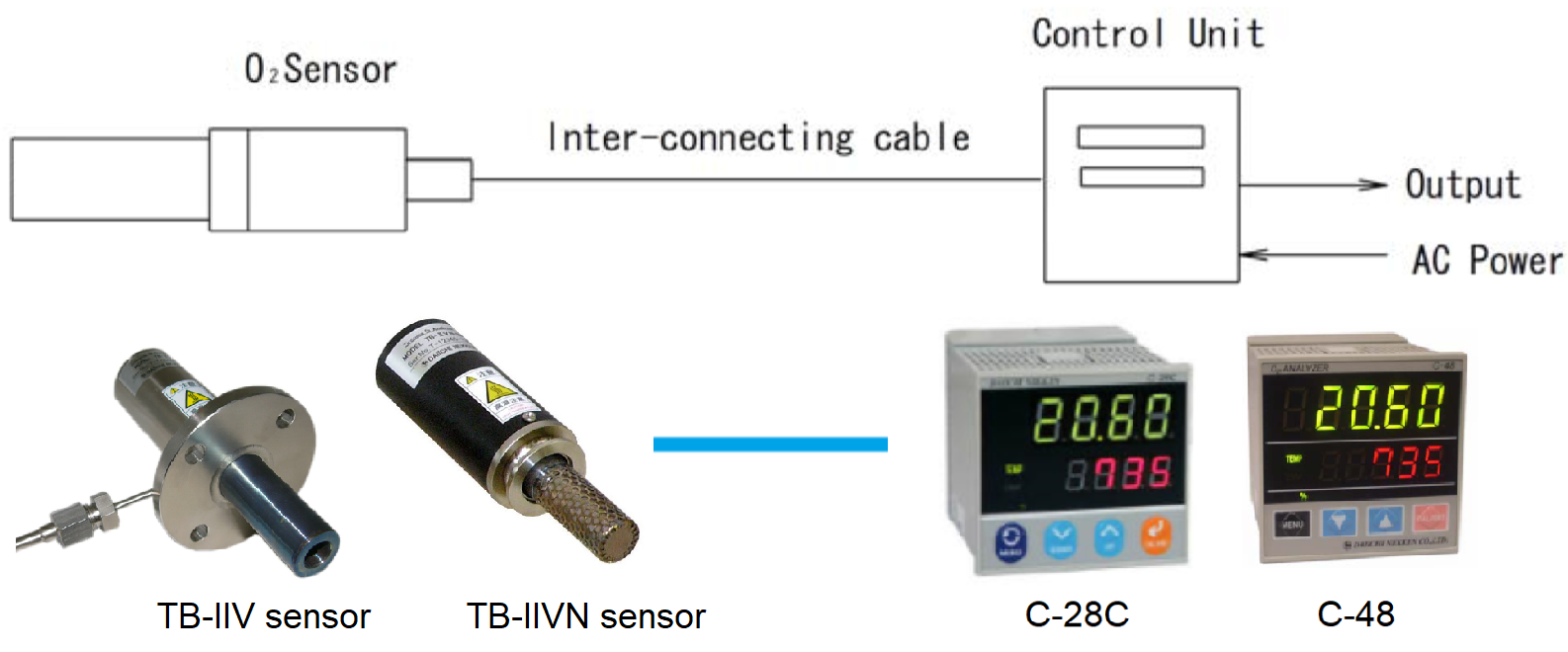 | 必須搭配C-28C控制器(適用於0.1ppm-100% O2範圍量測)或C-48C控制器(適用於10^-30atm-0.1ppm-100% O2全域範圍量測) 。 | |